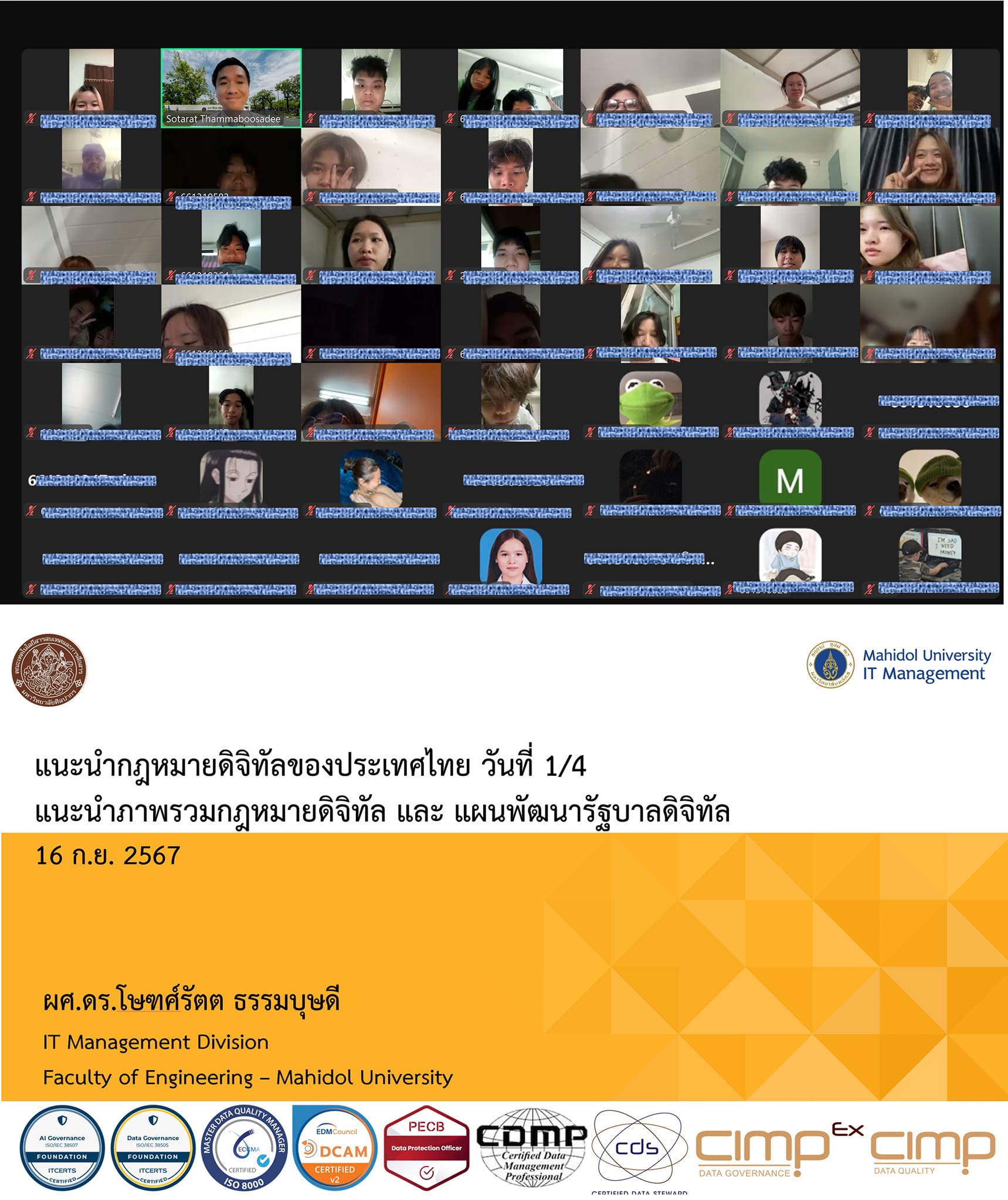 Digital Technology and Policy Development, Data Governance, Personal Data Protection, and Cyber Security - Mahidol University